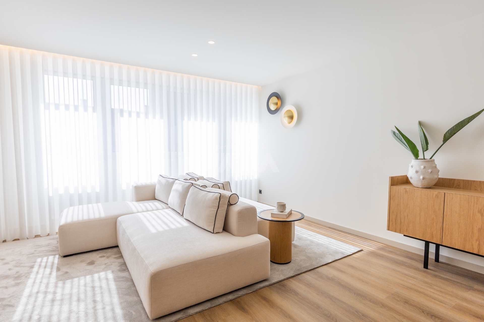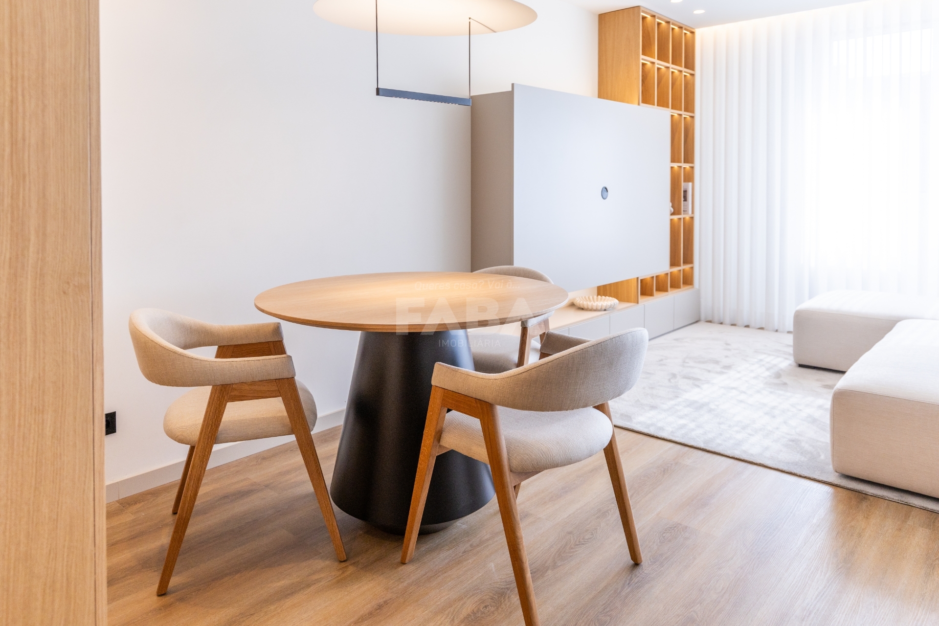 Boa distribuição de espaços, com áreas confortáveis e boa luz natural.