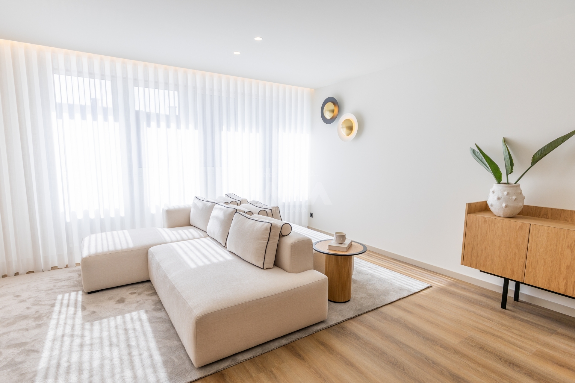 Boa distribuição de espaços, com áreas confortáveis e boa luz natural.